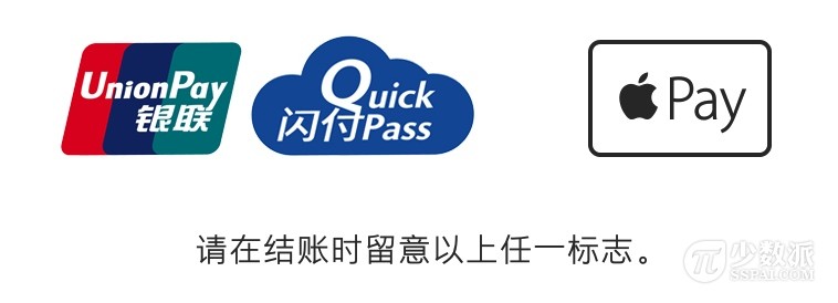 如果你实在希望在消费前先百分百确认能否使用 Apple Pay,也简单,只要认准以下任一标志即可。