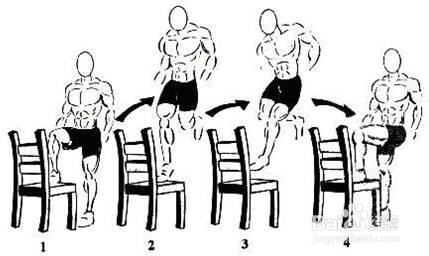 4、落地时另一只脚放到椅子上作为起跳腿,就如步骤1的姿势一样。重复整个过程直到步骤1,这算1次重复。