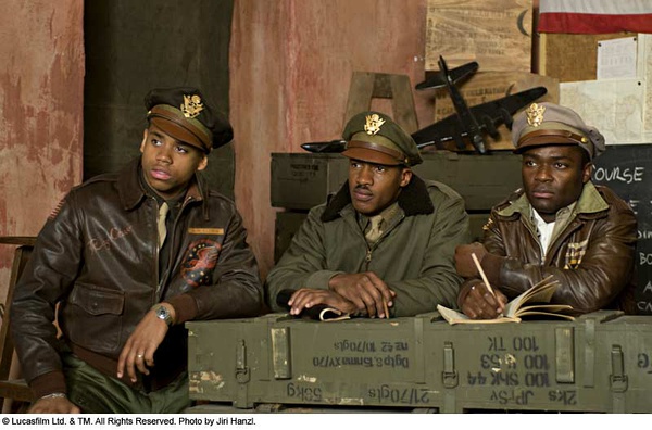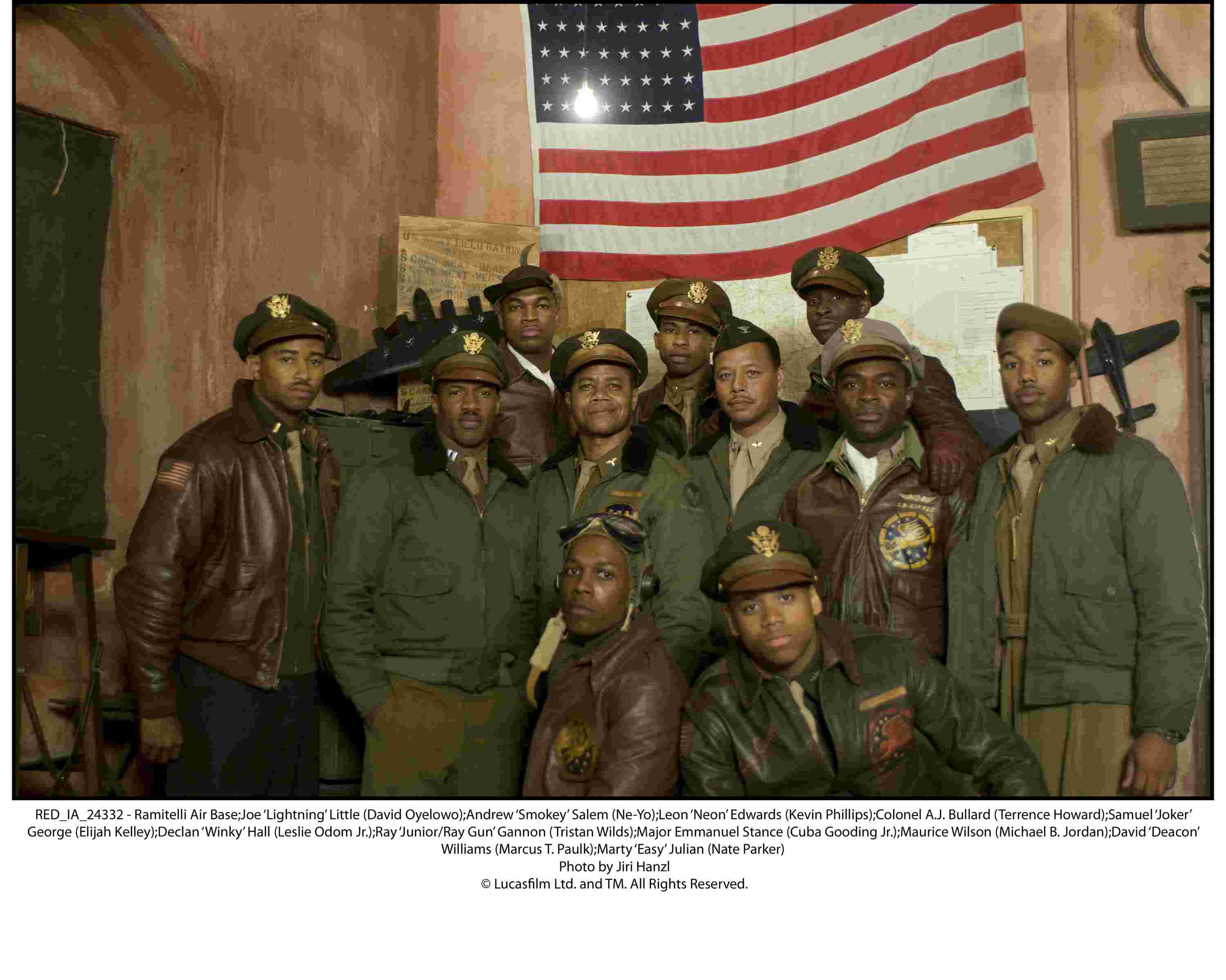 《红色机尾》灵感源自真实故事,影片讲述二战中,美国第一批黑人飞行员,克服当时制度和种族上的限制,组成了一支带有实验性质的特殊的轰炸机护卫队——塔斯克基飞行员(Tuskegee Airmen)。他们的飞机上都画着“红尾巴”,于是这也成为了他们的绰号。“红尾巴”这支美国军事史上第一支由非裔美国人组成的飞行员编队,因为参加战争培训被派往阿拉巴马州随时准备迎战。在那里,他们经历了猖獗的种族主义和骚扰,他们的飞行和战斗能力曾饱受质疑,但“红尾巴”在空中卓越的表现,促使空军废除了种族隔离制度。他们在与意大利、德国的冲突中也起到了不可或缺的作用。